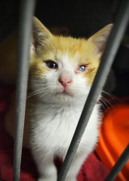 Gdy zobaczyliśmy apel o zamieszczenie zdjęć tych kociąt w celu adopcji, wiedzieliśmy od razu, że nie możemy ich zostawić tam, gdzie są. Teraz ich oczy wyglądają już znacznie lepiej po zaledwie jednym dniu w gabinecie weterynaryjnym. Wcześniej najmniejszy maluch (o połowę mniejszy niż rodzeństwo) zamiast oka miał jeden strup...