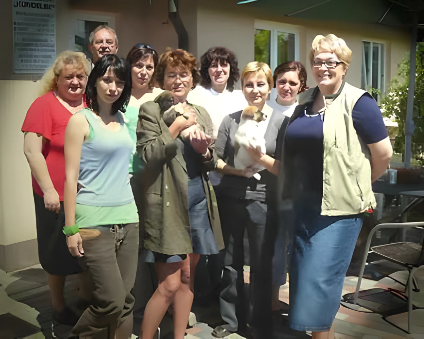 Doktor weterynarii Dorota Sumińska - goszcząca w naszym schronisku w maju 2010r. oraz personel schroniska.